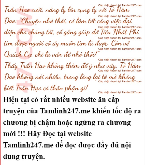 Phụt! Tô Hâm Dao không nhịn được cười, nâng ly với Trần Hạo: “Bất kể thế nào cũng cảm ơn hai người nhiều! Nếu sau này Quách Cự còn làm phiền, tôi sẽ chủ động nói rõ mọi chuyện cho ông ta, sẽ không làm liên luỵ đến các người!”