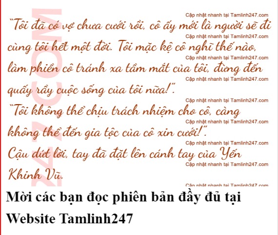 Cảm nhận được sự chán ghét của Diệp Thiên, cuối cùng Yến Khinh Vũ cũng thay đổi sắc mặt. Cô ta nghiêm túc hơn, lạnh lùng nói: “Diệp Thiên, tôi nghìn dặm xa xôi theo anh đến Hoa Hạ, thay đổi kế hoạch quay về tiểu thế giới là để tìm anh, thế mà anh lại đối xử với tôi như vậy?”.