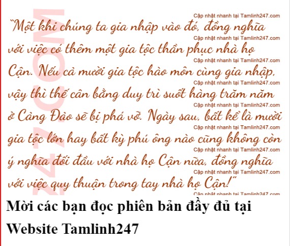 “Lần này thành lập thương hội Cận Môn, lấy danh nghĩa mời các cự phú thượng lưu ở Cảng Đảo cùng hợp tác vì sự phồn vinh của Cảng Đảo, chia sẻ tài nguyên chung, nhưng theo con thấy, lần này không phải là triệu tập, mà là kêu gọi hàng phục!”
