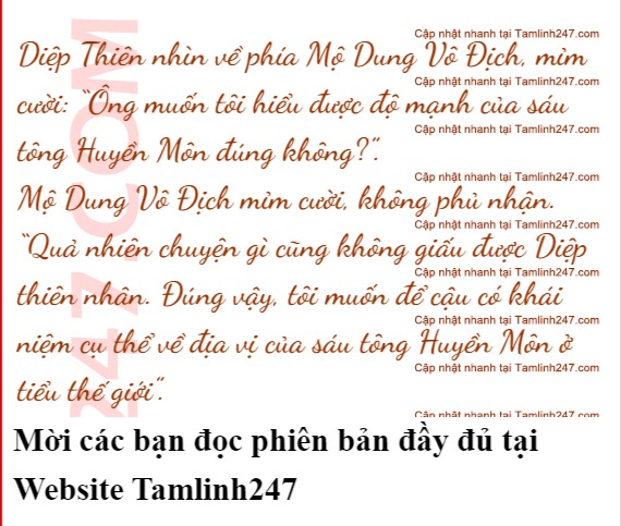 Nói vậy là trong tiểu thế giới, sáu tông phái đỉnh cao của Huyền Môn đúng là chiếm địa vị bá chủ tuyệt đối, không thể lung lay. Dù là mạnh như nhà họ Long cũng bị bọn họ chèn ép biến thành kẻ không còn nhà để về.
