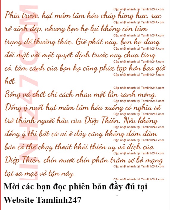 “Đây là hạt mầm tâm hỏa của Phệ Thiên Long Diệm, nuốt nó vào đồng nghĩa sẽ mãi mãi phục tùng tôi”.