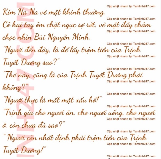 Bùi Nguyên Minh liếc mắt nhìn người phụ nữ trước mặt, nhanh chóng nhận ra, người phụ nữ này là chi thứ của Kim gia Kim Lăng, người phụ nữ đã gọi video với Trịnh Tuyết Dương, Kim Na Na.