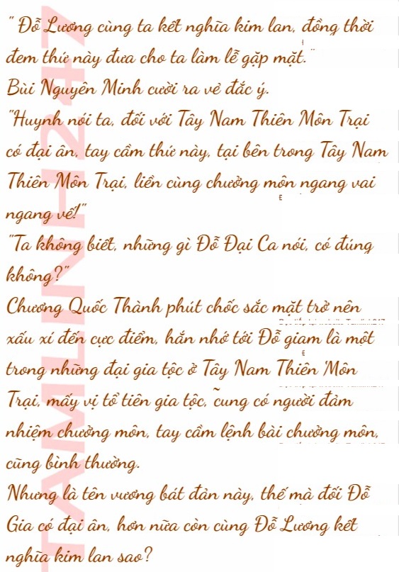 Hiển nhiên, không ai nghĩ rằng, trong tay Bùi Nguyên Minh lại có lệnh bài chưởng môn Tây Nam Thiên Môn Trại!