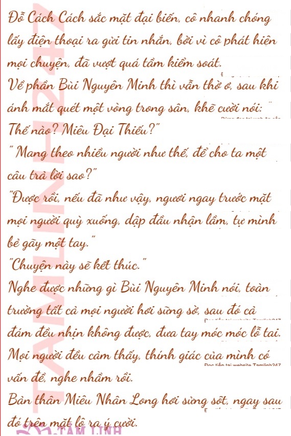 Miêu Nhân Long khuôn mặt tuy cười, nhưng trong nụ cười, lời nói lãnh đạm, cả người không có vẻ gì là tức giận, nhưng lại khiến người ta theo bản năng, cảm thấy kinh hãi cùng sợ hãi.