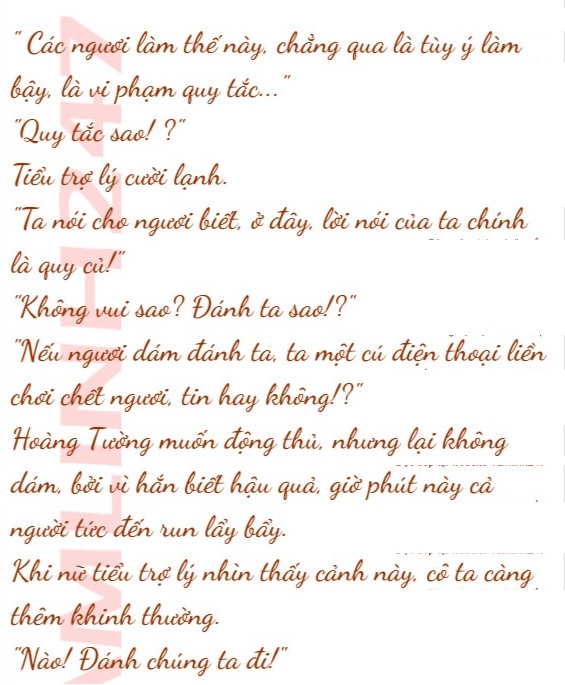 Không đợi Bùi Nguyên Minh lên tiếng, lúc này tiểu trợ lý vừa mới cao cao tại thượng, đã lạnh lùng khinh thường mọi người có mặt, nói: “Hoàng Phổ Thy, Hoàng Tường, kể cả những người khác!”