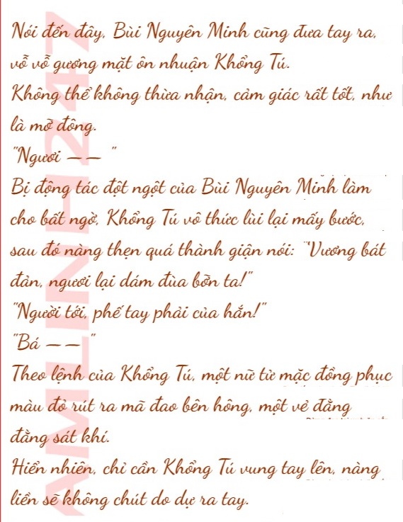 Khổng Tú đi đến trước mặt Bùi Nguyên Minh, đưa tay phải ra vuốt ve mặt Bùi Nguyên Minh, sau đó khóe miệng hiển hiện một vòng nụ cười kiều mỵ: ” Xin lỗi, hiện tại Long Ngục Kim Lăng, thật sự chính là ta định đoạt.”