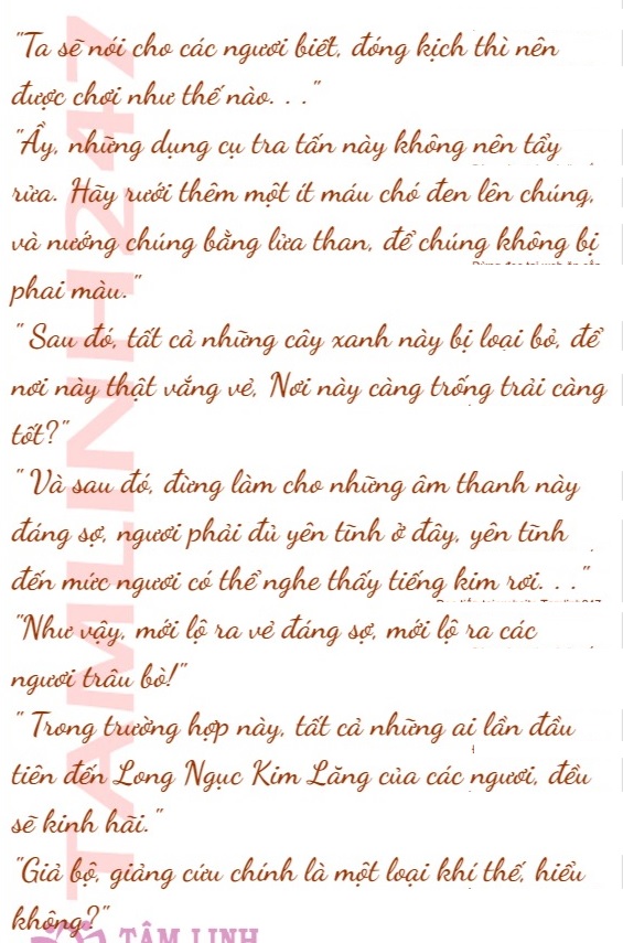 Hai bên đại sảnh có rất nhiều dụng cụ tra tấn, mùi máu tanh nồng nặc trên các dụng cụ tra tấn, dù đã được rửa sạch bằng nước nhưng vẫn không cách nào xua đi được mùi đó.