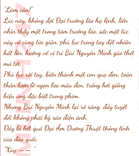Đang khi nói chuyện, Bùi Nguyên Minh tiện tay, từ trong túi lấy ra mấy tấm giấy vàng cùng chu sa, dùng ngón trỏ tay phải điểm một cái, liền phối hợp vẽ.