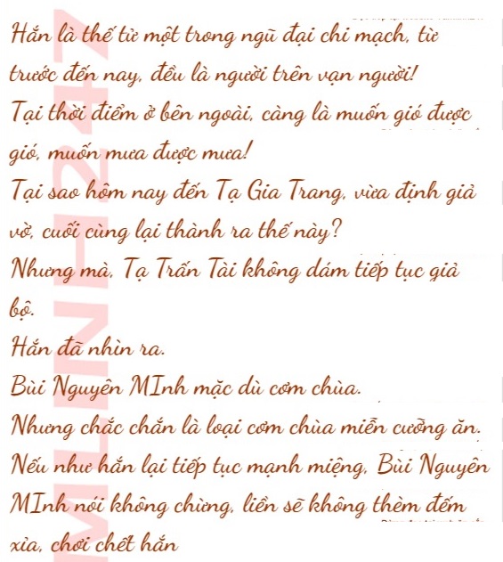 Bùi Nguyên MInh cũng không thèm để ý tới Tạ Trấn Hải cùng Mộc Tháp Na, lúc này mới buông lỏng chân, ngồi xổm xuống vỗ vỗ mặt Tạ Trăn Tài, nhẹ giọng nói: “Nào, nói cho ta biết, ai đang giết ai bây giờ? ”