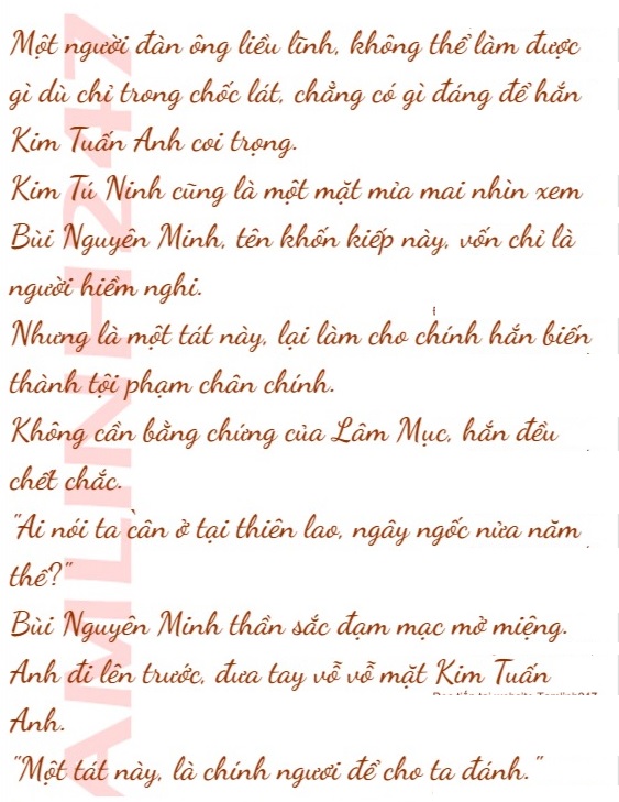 Hiển nhiên, nàng vô luận như thế nào cũng không nghĩ đến, Bùi Nguyên Minh đã trở thành tù nhân, thế mà còn dám ra tay, động tới Kim Tuấn Anh.