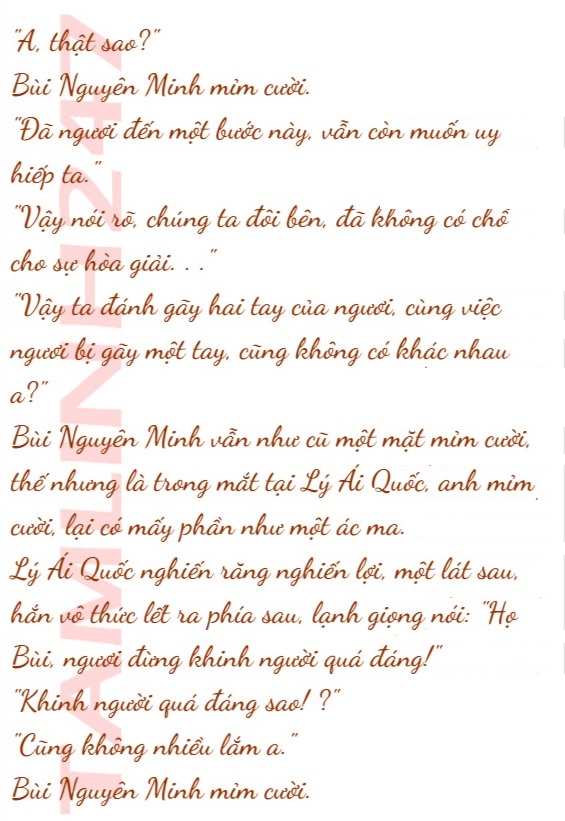 Không tiếp tục để ý tới Tư Đồ Á đã nhận sợ, Bùi Nguyên Minh chắp hai tay sau lưng, đi đến trước mặt Lý Ái Quốc, mỉm cười, nói: “Ngươi tự cho là đúng, dùng ngôn ngữ vũ nhục Tạ Mộng Dao, ta đánh gãy cánh tay trái của ngươi, ngươi không có ý kiến a?”