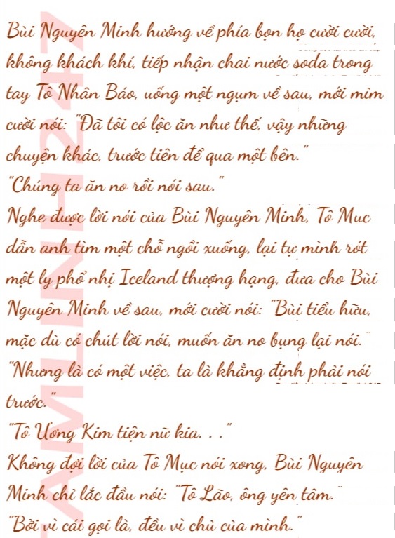Nhìn thấy Bùi Nguyên Minh xuất hiện, Tô Mục là người đầu tiên đứng lên, chào hỏi: “Bùi tiểu hữu, đến rất đúng lúc, cậu có lộc ăn rồi a!”