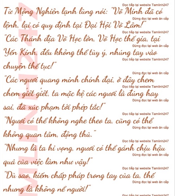 Một lát sau, hắn cười lạnh nói: “Từ Mộng Nghiên, ngươi mặc dù là chấp pháp tại Đại Hội Võ Lâm lần này, nhưng là nơi này, không phải là hiện trường Đại Hội Võ Lâm, cũng không phải là địa bàn Từ Hàng các ngươi.”