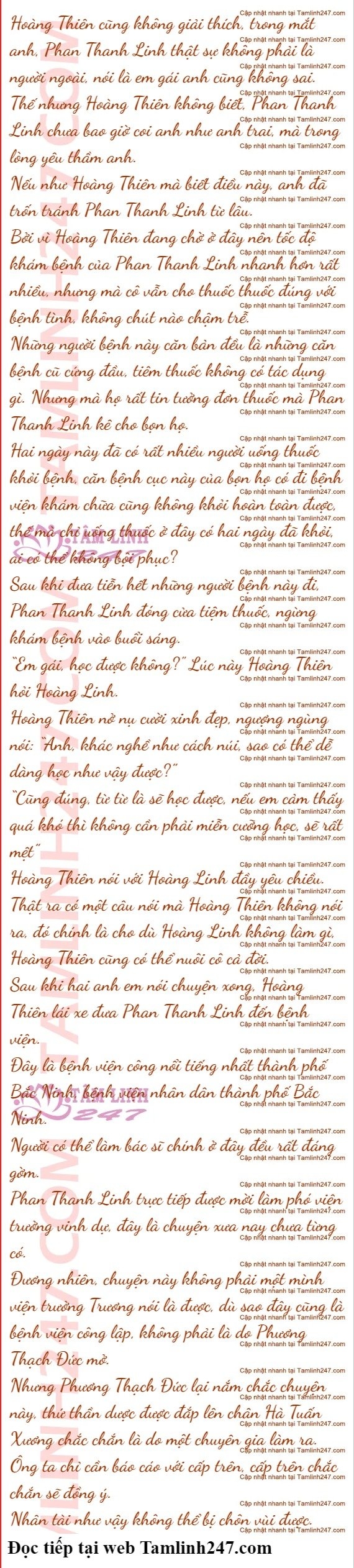 Thật là đáng sợ, dạng y thuật này có thể cứu được tính mạng của rất nhiều người, Phan Thanh Linh quả thật chính là Thiên Sứ được Thượng Đế phái xuống nhân gian để cứu giúp những người bị thương.