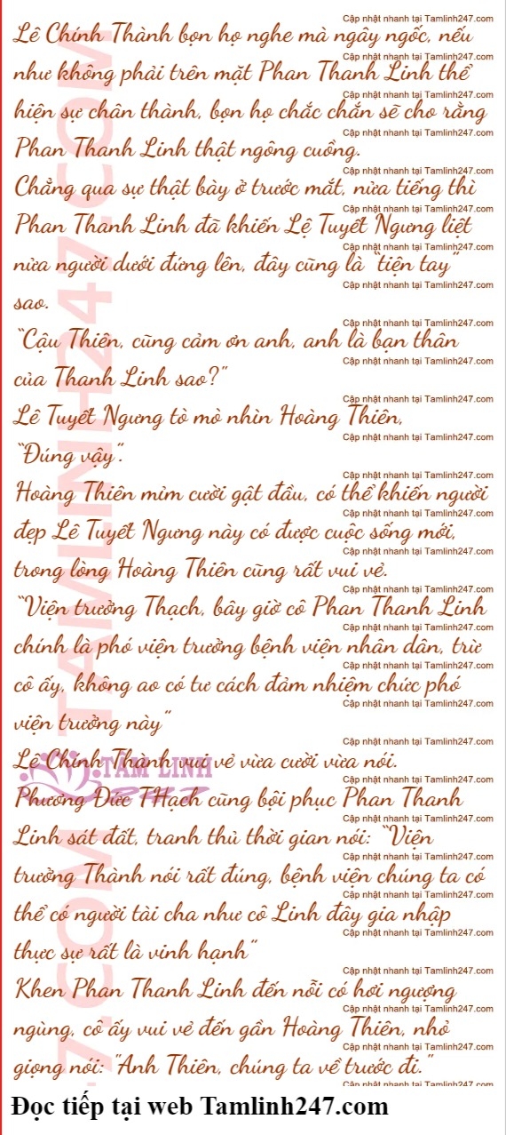 “Anh Thiên, vậy em đi giúp cô Ngưng chữa trị” Phan Thanh Linh nói với Hoàng Thiên.