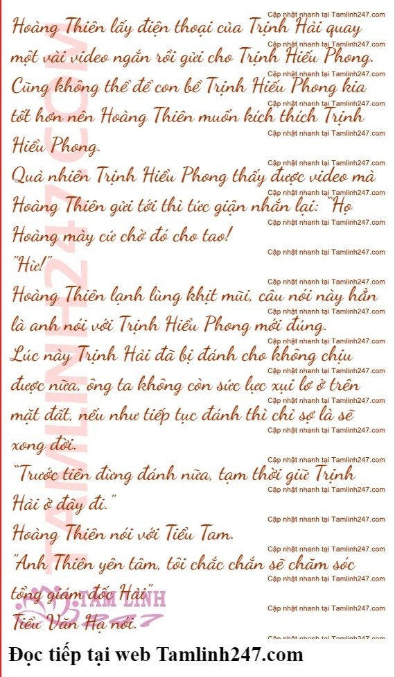 Hoàng Thiên cười lạnh lùng, anh không để ý tới Trịnh Hải và bà cụ Tưởng nữa mà an ủi Phan Thanh Linh sau đó ngồi ở trên ghế chờ Trịnh Hiểu Phong trở về.