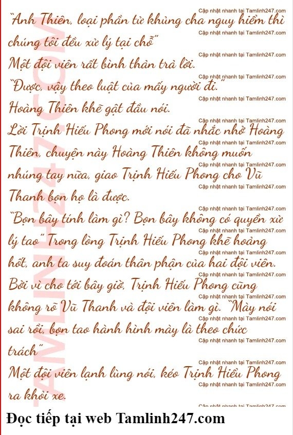 Hoàng Thiên nghe xong thì chấn động, nói với đội viên: “Trông chừng anh ta cho kỹ vào, gửi vị trí cho tôi”