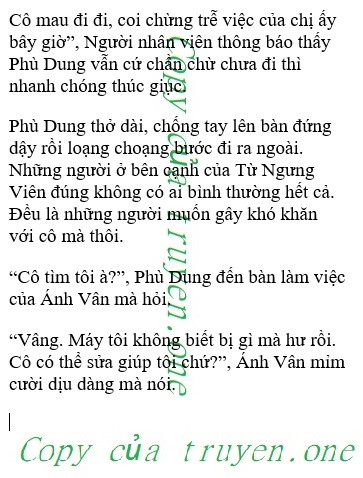 Phù Dung nhíu mày. Cô đau đầu đến mức sinh hoang tưởng luôn rồi à? Bình thường Ánh Vân không phải rất chê bai trình độ máy tính của cô sao? Vậy mà hôm nay lại gọi cô đến sửa máy tính.