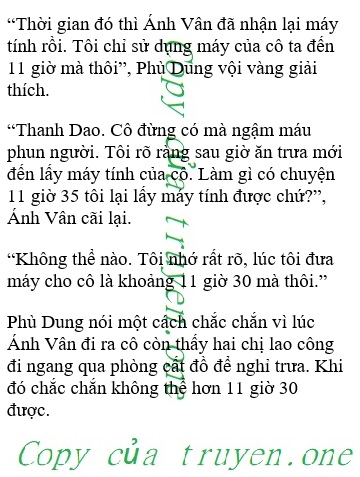 Gương mặt của Phù Dung trở nên tái mét. Cô hiểu rồi. Hèn chi sáng nay Ánh Vân lại gọi cô đến phòng đưa máy tính rầm rộ như vậy. Lúc đưa máy tính lại thì chỉ có một mình Phù Dung. Cô ta có đầy đủ bằng chứng ngoại phạm, đẩy hết mọi nghi ngờ lên người của Phù Dung.