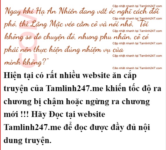Lăng Mặc ôm Hạ An Nhiên trong tay, dùng ánh mắt sâu xa nhìn chằm chằm khuôn mặt nhỏ nhắn đang hoảng hốt của cô, gằn từng chữ: "Cô là gì của tôi?"