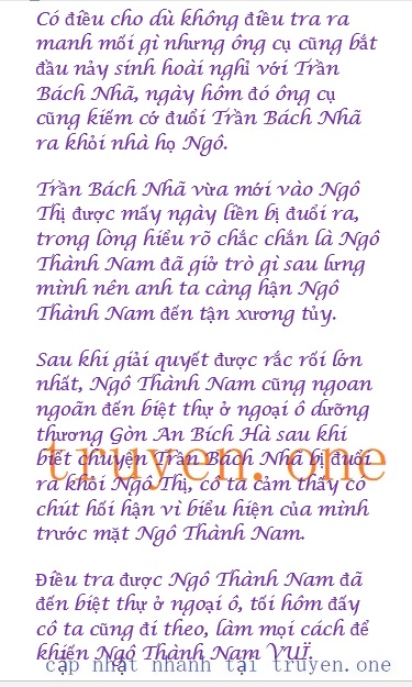 Để ông cụ càng thêm ghét Trần Bách Nhã, Ngô Thành Nam tiếp tục nói: “Trần Bách Nhã và cháu từ nhỏ đã không hợp nhau, cháu biết là do sự xuất hiện của cháu, cướp đi sự yêu thương của ông, cướp đi quyền thừa kế nhà họ Ngô, nhưng điều này cũng không thế trách cháu được, rõ ràng cháu mới là con cháu nhà họ Ngô, còn anh ta chỉ là người của nhà họ Trần mà thôi.”
