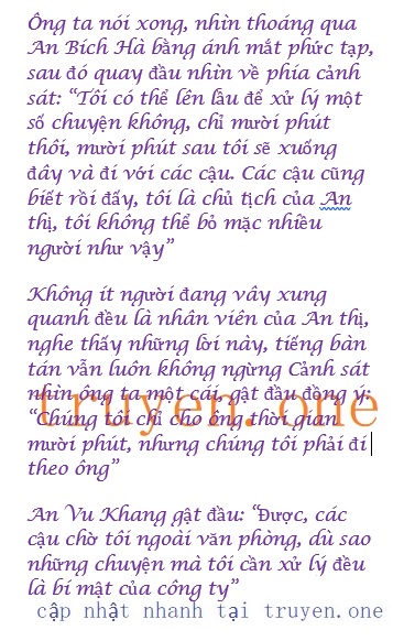 “An Vu Khang, chúng tôi đã nắm giữ chứng cứ chứng minh bốn năm trước ông đã phái người giết Bạch Nhật Quang, cũng mua chuộc pháp y Lý Hiên Nam để anh ta làm giả chứng cứ, đây là lệnh bắt, mời ông đi theo chúng tôi một chuyến.”