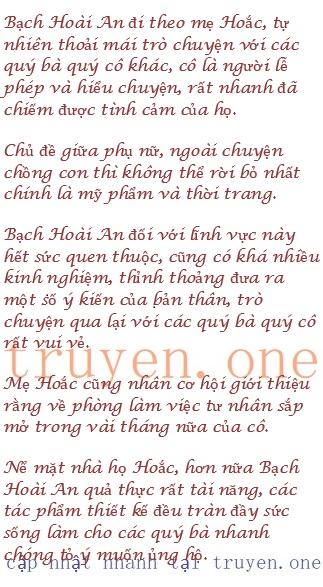 Hoắc Tùng Quân thấy hai người bị vây quanh tán dương, mẹ Hoắc cũng thật lòng bảo vệ Bạch Hoài An và nói đỡ giúp cô liền thở phào nhẹ nhõm, mở miệng nói: “Mẹ, Hoài An, con về trước đây. Khi nào kết thúc con sẽ đến đón hai người”