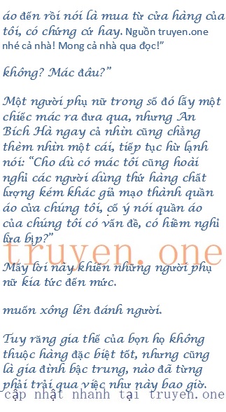 An Bích Hà không thể đối phó được mấy người phụ nữ trong cửa hàng kia, nên mặc kệ tất cả giao lại hết cho nhân viên cửa hàng, chuẩn bị rời đi để đến tìm mẹ thương lượng cách ứng đối.