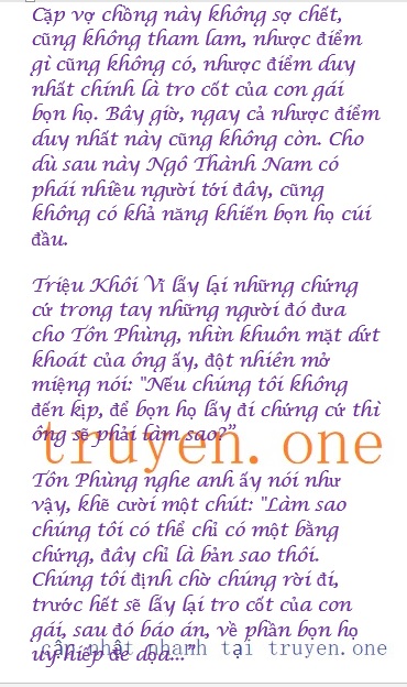 Lúc anh ta còn đang nghỉ hoặc thì ông cụ giải thích cho anh ta: “Mấy người mày sai đi giải quyết cặp vợ chồng đó đã được đưa đến đồn cảnh sát”