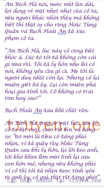 Cô ta trả thù Bạch Hoài An và lấy lại Hoắc Tùng Quân thì có gì là sai! “Hoắc Tùng Quân, anh thật sự quá độc ác, tại sao lại đối xử với em như vậy? An thị đã sụp đổ rồi, em chỉ còn lại một mỗi ‘Khinh Hà’. Sao anh không buông tha cho em mà còn ép buộc em đến mức này. Anh thật là độc ác!”