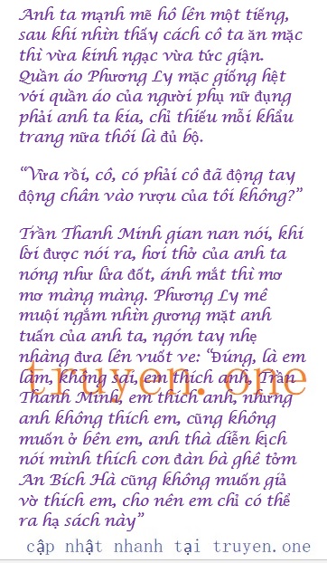 Phương Ly cười cười đuổi theo, cô ta móc chìa khóa từ trong túi ra: “Trần Thanh Minh, anh từ bỏ đi, anh uống ly rượu đó xong thì tâm trí của anh sẽ bị dục vọng căn nuốt rất nhanh.