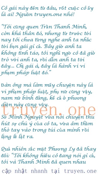 Sở Minh Nguyệt nhân cơ hội đó kéo Trần Thanh Minh ra khỏi tay cô ta, vừa nhanh, vừa chính xác, dứt khoát, hoàn toàn không cho Phương Ly cơ hội phản ứng.