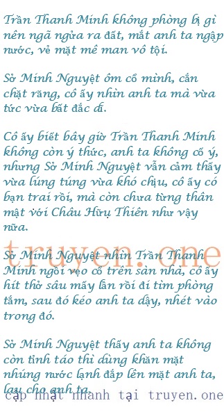 Trần Thanh Minh nhìn cửa kính phòng tắm, ánh mắt tối sầm lại, nếu như anh ta nhìn không nhầm thì hình như trên cổ Sở Minh Nguyệt có một dấu hồng hồng.