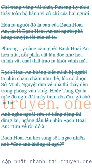 Sắc mặt Bạch Hoài An càng tệ hơn: “Đó là Phương Ly, cô ta dám làm chuyện đó với Trần Thanh Minh, cô ta không muốn sống nữa mài”