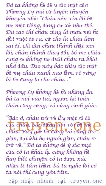 Bà ta đứng ở trước cửa, người trong nhà nhìn thấy, nhìn theo ánh mắt của bà ta đã thấy bóng lưng của vội vàng rời đi Phương Ly, biểu cảm trên khuôn mặt có phần phức tạp.