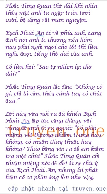 Bạch Hoài An vừa định quay đi thì Hoắc Tùng Quân đã vươn tay túm lấy cô: “Anh vừa thấy mấy đồ ăn mà Trần Thanh Minh lấy ra rồi, trong lòng cậu ấy cũng biết rõ. Em lại đây ngồi với anh đi, nói chuyện với anh thì anh sẽ không đau nữa.”