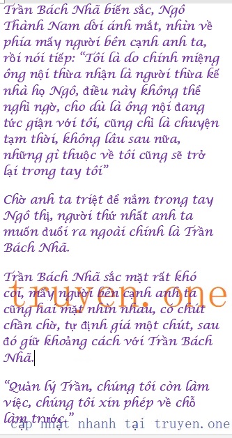 Ngô Thành Nam bật cười một tiếng, liếc Trần Bách Nhã một cái: “Em họ, cậu nhìn mà xem, lòng người chính là lạnh nhạt như vậy, hiện tại còn chưa có xác định người thừa kế sau cùng là ai, bọn người đó chính là cỏ đầu tường, có thể vì lợi ích tiếp cận cậu, chỉ cần phát giác được không có lợi ích gì nữa, thì sẽ lập tức vứt bỏ cậu, cậu tự giải quyết cho tốt đi”