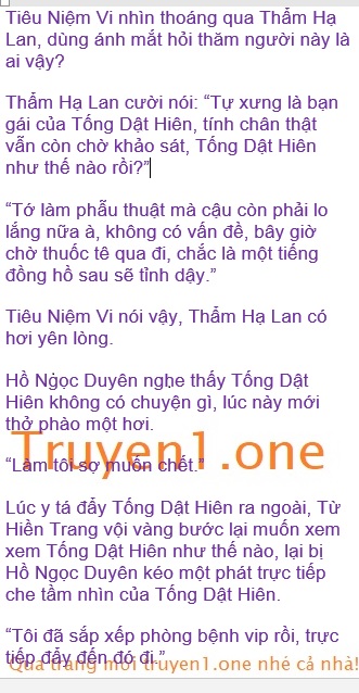 Hồ Ngọc Duyên không thèm để ý lời nói của mình làm Từ Hiền Trang khó xử bao nhiêu, cô ta trực tiếp nhận việc từ tay của y tá, đẩy Tống Dật Hiên vào trong phòng bệnh vip.