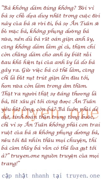 Cô có thể hận bà cụ Diệp, thậm chí sau này có thể phớt lờ bà ta, nhưng Diệp Ân Tuấn có thể ư? Đó là người anh đã gọi mẹ trong suốt hai mươi mấy năm qua, nếu giờ anh biết mẹ anh đã tính kế hại anh thành như thế, hơn 20 năm qua anh chỉ là công cụ, quân cờ trong tay bà cụ Diệp, thì có lẽ anh mới là người tổn thương nhất.