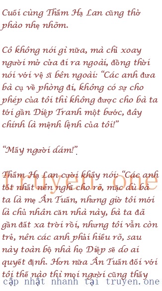Nhưng bà cụ Diệp lại lạnh lùng nói: “Đó là do nó tự chuốc lấy, nếu nó có thể nghe theo đừng phản kháng, chống lại chuyên gia thôi miên, thì trong lòng nó sẽ cho rằng cô có lỗi với nó, như vậy nó sẽ không yêu cô như lúc này. Nếu không phải tại cô, thì tôi đâu cần làm thế, chính cô đã hủy hoại Ân Tuấn của tôi.”