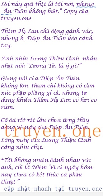 “Các anh tới làm cái gì? Không phải chỉ là chuyện căn nhà thôi sao? Nói qua điện thoại là được rồi, thế nào người cũng tới rồi? Hửm? Người đằng sau các anh sao thế? Tới khám bệnh à? Diệp Ân Tuần, anh có ý gì hả? Bây giờ đã là 7h30p tối rồi, ca phẫu thuật này của vợ tôi còn chưa kết thúc, anh đây là định để cô ấy thức đêm làm việc?”