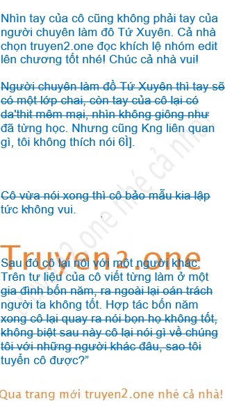 Cô lại hỏi một câu khác: “Chị gái à, chị là một người Giang Châu, làm sao có thể nâu được món Tứ Xuyên chứ?”