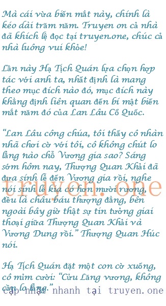 Thủ hạ tâm phúc lui xuống, Thượng Quan Húc ngắng đầu nhìn Hạ Tịch Quán đối diện: “Lan Lâu công chúa, chúc.