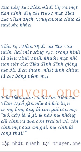 Lục Hàn Đình và Tiểu Lục Thần Dịch đều là thiên chi kiêu tử IQ cao, đối thoại với nhau chưa bao giờ cần nói nhảm, nghe được hai chữ “tam thai” này, trong đôi mắt to diệu sáng kia của Tiểu Lục Thần Dịch nhanh chóng lóe lên gì đó.