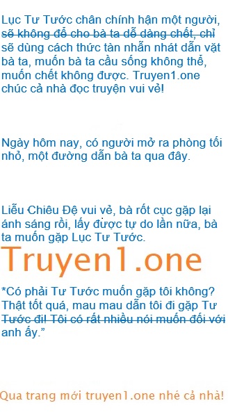 Lần trước chuyện Liễu Chiêu Đệ cấu kết Giao Nhân Tộc bị bóc ra, bà ta đã bị Lục Tư Tước giam cầm, Lục Tư Tước không nhìn bà ta, cũng không nghiêm phạt bà ta, chỉ là nhốt bà ta vào một gian phòng tối nhỏ, trong phòng kia không một chút sáng, thâu đêm suốt sáng đều là bóng tối, Liễu Chiêu Đệ bị giam ở bên trong, sợ hãi, bất an, mê man như dây leo cuồn cuộn sinh sôi trong lòng, loại dằn vặt không tiếng động khiến bà ta gầy đi nhanh chóng, trạng thái tinh thần cũng vô cùng kém.