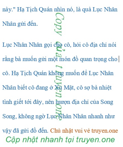 Khi nhận được WeChat, Lục Hàn Đình trả lời “Có thẻ, nhưng không được mang váy ngắn, giữ khoảng cách an toàn với đàn ông, còn nữa phải gửi tin nhắn cho anh trước 8 giờ tối, anh đón em về.” Hạ Tịch Quán: “Vâng ạ, cảm ơn Lục tiên sinh!” Tiệc tối được cử hành trong đại sảnh nguy nga lộng lẫy ở khách sạn, Hạ Nghiên Nghiên dày công trưng diện, rất sớm đã có mặt.