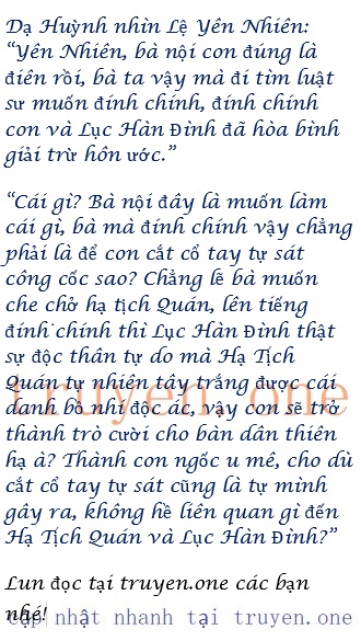 “Phu nhân…” Bên kia truyền đến tiếng nói đè thấp, là tay chân mà Dạ Huỳnh mua chuộc ở Lệ gia: “Không xong rồi, tôi nghe nói lão phu nhân muốn thanh minh, đính chính chuyện Lục Hàn Đình và Yên Nhiên tiểu thư đã giải trừ hôn ước!”