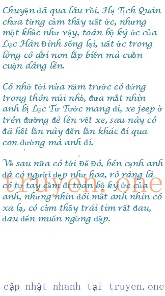 Lục Hàn Đình dùng hai tay nâng khuôn mặt nhỏ của cô, môi mỏng ép lên, anh bắt đầu hôn lên từng giọt lệ trên mặt: “Quán Quán, sao em có thể nhẫn tâm đập nát trứng chim anh tặng em, sao em có thể nhẫn tâm không quay đầu lại liếc lấy anh một lần, khi đó anh thực sự nghĩ em không cần anh nữa. Hôm nay, một giây trước khi bước vào Lục gia, anh còn không rõ vì sao, vì sao Lục phu nhân của anh đột nhiên không cần anh nữa, dù anh có cầu xin cô ấy đừng đi, cô ấy vẫn cứ bỏ lại anh mà dời bước.”