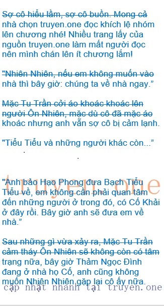 Trong mắt Ôn Nhiên thoáng hiện lên tia đau lòng: “Lúc đó, em thật sự nghĩ anh và cô ấy…em rất sóc và rất buồn.” Cô nói chậm rãi, giống như nhớ lại cảm xúc vừa rồi, Mặc Tu Trần giải thích với vô lý do vì sao anh đi ra vườn sau, cô cũng không muốn giấu anh.