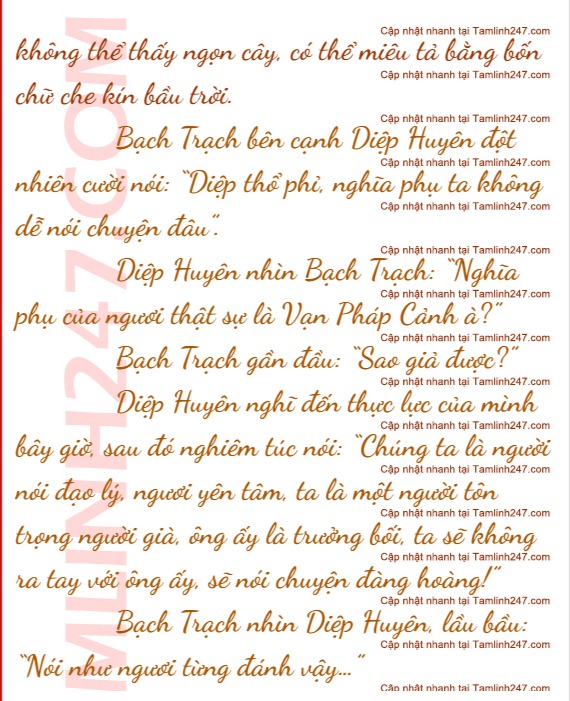 Khoảng ba canh giờ sau, Diệp Huyên và Bạch Trạch dẫn đàn yêu thú đến Mang Sơn. Vừa đi vào trong, sắc trời lập tức tối lại, vì đám cây thật sự quá cao, người bình thường đứng dưới cây nhìn lên hoàn toàn